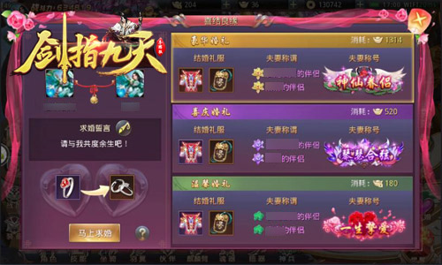 百年恩爱双心结,千里姻缘一线牵。在这个刚毕业就急着娶妻生子的年代,不需要谈轰轰烈烈的恋爱也可以成为夫妻哦!冰河《剑指九天》七夕恋爱节开启后,玩家只需达到120级,即可与任意一名异性结为夫妻。玩家成为夫妻之后,系统还将为两人送上姻缘大礼包,免费赠送玩家结婚礼服与专属夫妻称为、夫妻称号哦!