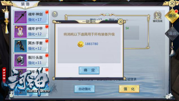 装备强化是提升人物战力属性最直接的方式,它的强化途径非常方便,点击装备按钮后,一键便可以把所有装备提升等级。自动强化会平均提升装备等级,这样的方式非常均衡,玩家不必担心某些装备过强而某些装备太弱。