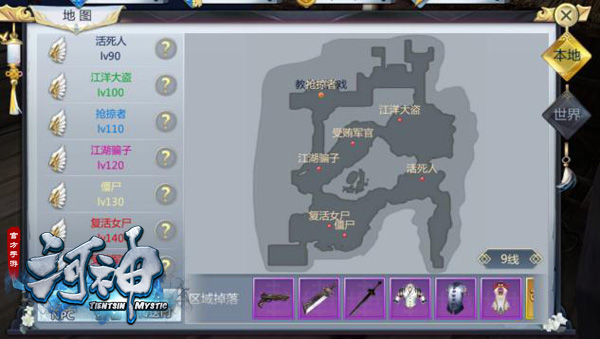除了世界Boss爆出神装能给玩家提升战力外,某些特定任务也能够让你提升更多的战力。在《河神》手游中点击右上的地图会弹出一个地图界面,在这里玩家可追踪到场景内的NPC、怪物、以及传送门位置,点击即可自动寻路做任务。