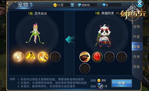 太多宠物了,背包都要放不下了怎么办?玩家可以将许久不出战的宠物炼化成宠物炼星丹用以培养出战宝宝。或者挑选一个你最喜欢的宠物宝宝作为重点培养对象,利用合成系统将其他优秀的宠物技能转移到它身上,从此战斗一个顶俩!宠物传承则可以将你此前培养的高星宠物的星级传承到你最喜欢的宠物身上,以前耗费心力对可爱的崽们的培养永不浪费!