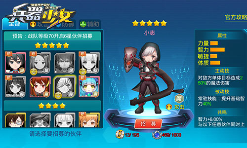 在《兵器少女》中,队长们想要组建自己的战队(后宫)还是比较容易的。毕竟像《兵器少女》这种一言不合就送五星小姐姐的游戏,真是一不留神就集齐一个后宫(攻)团的节奏啊。什么?队长们问小编我为什么会说“后攻团”?那当然是因为——咱们的战队里也有高颜值的小哥哥呀。