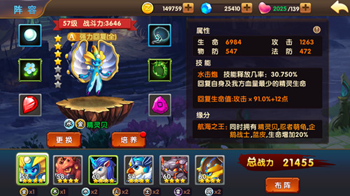 精灵贝,当厚厚的壳儿遇上漂亮的精灵族小仙女,它就变成了小仙女的碎花裙,变成了小仙女轻薄的精灵翼,载着它到处行医救治。精灵贝是《精灵之战》中的超级奶妈,是搭配其他阵容重要萌宠之一,拥有水金元素的它会释放“水击炮”,从而恢复自身以及同伴的血量,而此血量跟精灵贝的攻击成长相关,而拥有金元素的它能更好弥补这一特性。