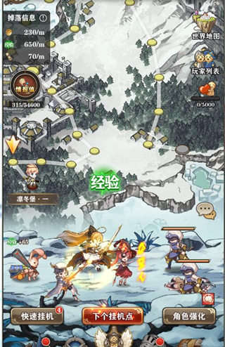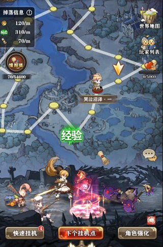 万一战力不足,被dalao按在地上摩擦该怎么办?那就只好继续放置练级,提升角色属性咯!如果你想要快速获得提升的话,可以选择快速挂机,瞬间获得120分钟的收益,让你的成长速度堪比秋名山上的飙车老司机!而击败BOSS后可以前往新的风景,开启下一个战斗点!当情报值显示满格时,还可以去打开新世界的大门,来一发探险玩法!漫漫冒险路上不免有些许寂寞孤单,不妨点开聊天频道和陌生人畅谈,放置交友两不误,分分钟认识到交心的老铁哦!