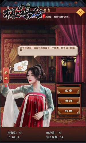 有多少男人能对妹子坐怀不乱,又有几人不曾想娶三妻四妾?各位玩家不必忧愁,冰河游戏首款策略养成官斗手游《极品县令》(安卓版)满足各位玩家的幻想,妻妾成群不是梦,首充VIP即可领取绝色美人西施,完成主线任务同样可迎娶青梅竹马小妹妹,天下美人等待你来征服!话不多说,快跟着小编去游戏里看看吧!