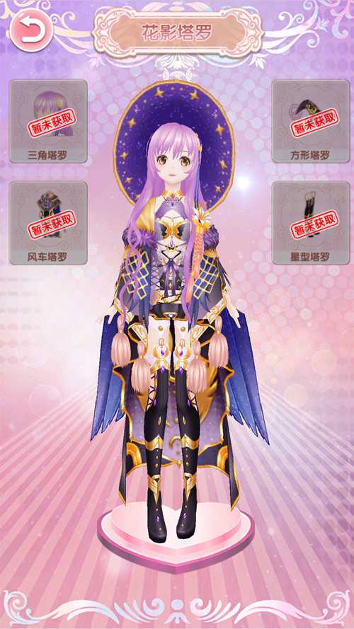 紫色的【花影塔罗】充满了高贵与神秘感,繁星点缀,更增添了朦胧的诱惑力。魔法帽,披风,黑色长靴,塔罗占卜师又在默默祈祷着什么呢?全新功能“花影塔罗”专属同名服饰现已登陆游戏,只需要收集碎片,就可以拼合出这一套美丽而梦幻的服饰啦!赶紧行动吧!“静谧的梦想,勾勒出诗和远方的色彩,我默默许愿,希望一切都可以实现。”