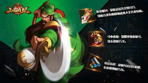 武将不仅彼此之间有缘,还与特定的武器、坐骑、兵书有缘。比如众所周知的武圣关羽,就是手持青龙偃月刀,胯下赤兔马,且喜夜读春秋。玩家如果收集到特定的武器、坐骑或兵书后,可为武将进行装备觉醒,将通用装备变为专属装备,从而提升武将的战斗力。其中武器觉醒后,还能让武将的必杀技变为超·必杀技,威力大幅提升。