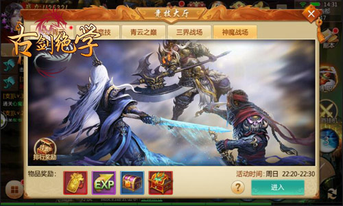 真正的pvp,必须无视大R与菜鸟,土豪与零元党,让所有人都可感受1v1单挑的快乐!在冰河《古剑绝学》中,巅峰竞技玩法便是最公平的1v1手操pk玩法,玩家可在每周二、四、六晚间21:00-21:30参与巅峰竞技,由系统自动为玩家匹配最合适的对手,之后即可进行1v1手操单挑,依靠自己的麒麟臂击杀对手即可获取海量荣誉奖励哦!