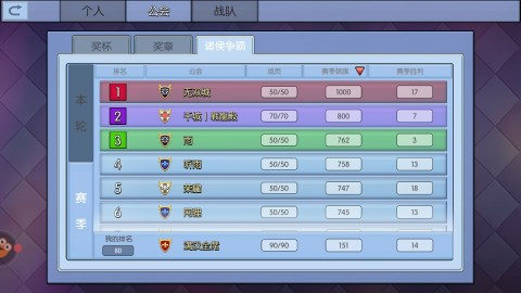 联赛系统以公会的奖杯来划分,按照青铜、白银、黄金、铂金、钻石、大师、王者的区间为主。所有的公会不能手动更换联赛,只能依照每个赛季的奖杯来进行系统划分。每个联赛的期限为一个月。拿出你们的实力,去挑战所有看见的对手,为自己的公会赢来更多的奖杯吧。