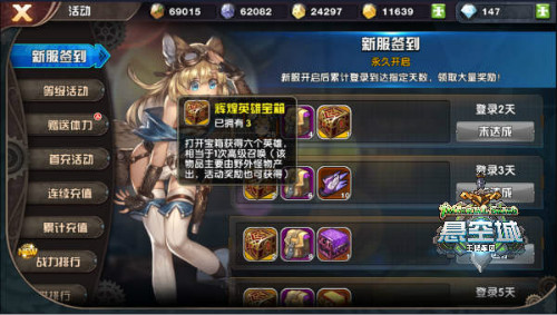 对于游戏内的平民玩家,英雄召唤确实比较氪金,这时参加新服活动获取英雄宝箱成了不错的选择。游戏内的辉煌英雄宝箱相当于一次高级召唤令,同时还省去了点击六次的麻烦,打开英雄宝箱便有机率获取金色英雄,目前玩家可以通过击杀野怪和新服签到活动来获得宝箱。只要指挥官们平时多多参加活动,金色英雄不是梦呦!