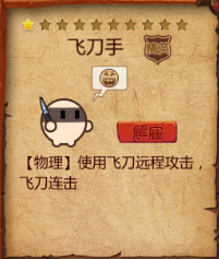 2.飞刀手:【物理】使用飞刀远程攻击,飞刀连击,建议放在前排最好是不受攻击或者少受攻击的位置,进攻阵容和防守阵容都非常合适。