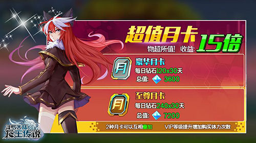 从消费角度来说呢,《龙王传说》手游为大家提供的将是最经济实惠的发展教程。我们吧VIP6视为一个阶段的提升,VIP特权的提升十分有用,比如增加体力购买次数,毕竟体力在这个游戏里十分重要,有体力就意味着你可以继续提升,没体力就只能干瞪眼啥都干不了。竞技场购买次数以及额外的VIP每日任务等等,是十分必要直接提升手段,投入一定要明智,推荐购买两张月卡,一张30元的和一张50元的,两张月卡收益率都十分的高,之后一定不要忘了每天上线领取一下两张月卡的奖励。