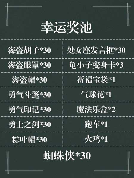 活动内容:活动期间,使用200金币可进行一次抽奖,奖池内有15个物品,每次抽奖不会抽到重复物品直到重新开始循环,所有奖励物品非绑定。