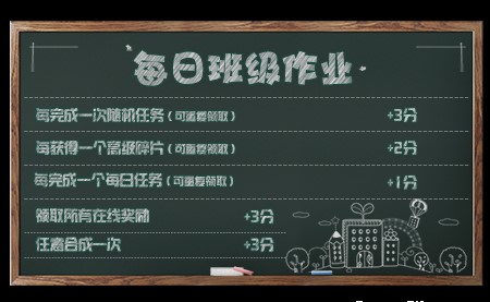 活动内容:活动期间,点击“返校”参与活动,系统将随机分配到推理1-5班中的一员,成为各自班级的一员!每日完成额外任务及常规任务将计算学分,班级名次将会把各自班级的总学分进行比拼;班内个人名次将会在班级内进行比拼。接下来,开始加入到班级大比拼中来吧!