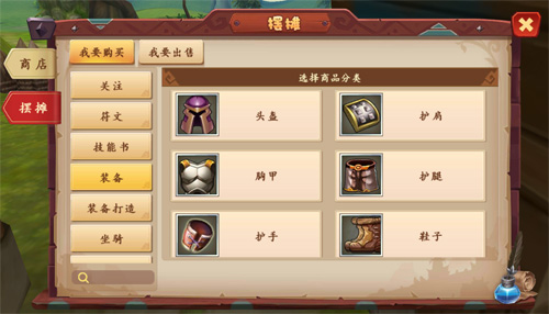 在游戏中,每个玩家最多可拥有8个基础摊位,根据贵族等级的提升,可以获得额外的贵族摊位。在摆摊功能下又分为“技能书、装备、符文、坐骑、装备打造”等多项购买分类,精确搜索节省更多时间。