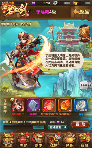 《碧血剑》手游中需要消耗精力的玩法内容可以产出丰厚的道具精力和部分经验。游历冒险2点/小时(可选4小时、8小时和12小时三种模式),可产出城市捐献材料、英雄碎片、突破石等;演武场比武2点/次,可产出声望、银两和经验等;夺宝2点/次,可产出秘宝碎片、英雄碎片和各类道具等。其中城市捐献材料、秘宝碎片和声望都是特定产出,只有消耗精力的玩法内容才可产出。