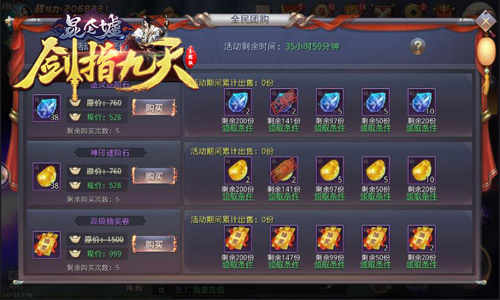 子曾经曰过:不给玩家送福利的活动不是个好活动!冰河《剑指九天》全民团购不只是奢侈大R才能参与的剁手活动,只要全服玩家在活动期间累计购买团购道具达到特定次数后,全服玩家均可领取各类进阶石、抽奖券等道具奖励。“大R剁手,人人受益”的机会不多,各位玩家别忘记督促自己身边的大R们来剁手哦!
