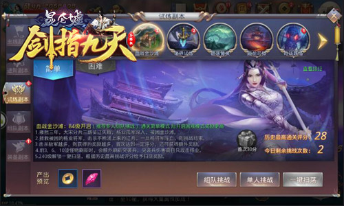 新手打本,无需猜想便知结局只有一个:当然是扑街啦!在冰河《剑指九天》中,各位新手玩家切莫独自闯荡各类副本,与其他玩家共同组队打本不仅可获得多倍掉落奖励,更可在快速解锁一键扫荡功能,从此以后打本不求人,每日扫荡副本直接获取各类练级资源,快速升阶晋级大佬行列不是梦!