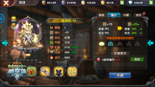 《悬空城》中任何英雄,都可以通过强化石进行强化,每次强化之后都会为英雄提供血量和攻击的百分比提升,每隔10级还会突破一次,增加大量额外属性,而强化石和突破石的获得方式也比较亲民,商店购买实在太贵,土豪也不一定消费得起,反倒是平民刷野打龙可以很好的积累材料。所以此功能重肝不重氪,值得刷刷刷。