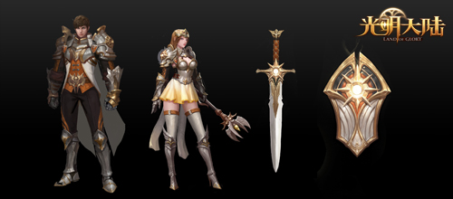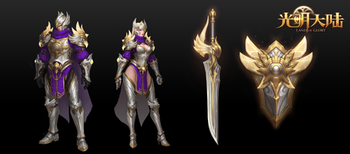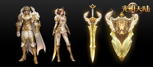 作为《光明大陆》3.0版更新重点,新职业圣骑士能输出、扛伤,续航的多面能力自开始便备受玩家期待,同时他们的造型也是本次更新的亮点之一。在目前曝光的多组外观设定中,可以看到圣骑士造型透着无限庄严肃穆。剑与盾的装备搭配,是圣骑士可攻可守的战场定位最好帮手。金色与银色相互交辉,威武的雄狮、燃烧的太阳等纹饰点缀其间,更代表了圣骑士形象上的圣洁,战场上的勇猛。