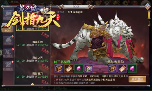 如果说屌丝有三废,女神有三宝,那么各位玩家大佬就有三抢:抢开服,抢排名,抢首杀!其中最重要的抢首杀,便是每天抢第一只BOSS啦!在冰河游戏首款3D-ARPG正统武侠手游《剑指九天》(安卓版)中,需要集体作战的帮派BOSS、全服参与的跨服BOSS等海量BOSS等你来战,抢首杀还有额外宝藏奖励哦!话不多说,快跟着小编去游戏里看看吧!