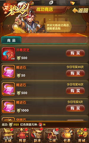 获取方式:游历城市(顺天府)冒险、英雄商店兑换或购买、威望商店兑换、战功商店兑换、琉璃商店兑换和帮派商店兑换等多种方式。