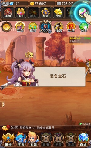 宝石系统的开启并不艰难,闯过50大关即可开启,不过作为二次元新人,对你的考验才刚刚开始,比如宝石系统中的宝石槽就需要你自己努力去完成各种条件来开启。宝石是分等级的,击败整数关卡BOSS都有机会获得低级宝石,必须通过合成系统升阶。