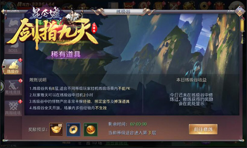 大佬们的时间是宝贵的,毕竟赚钱是次要的,享受江湖生活才是首要的!在冰河《剑指九天》中,各位玩家若想练级赚钱两不误,那就别错过每天限定2小时的练级谷玩法哦!在练级谷玩法中,系统会自动为玩家选择当前最合适的升级场景,在场景内挂机即可快速升级,并且拾取到怪物掉落的海量铜钱哦!不说了,小编先挂机为敬!
