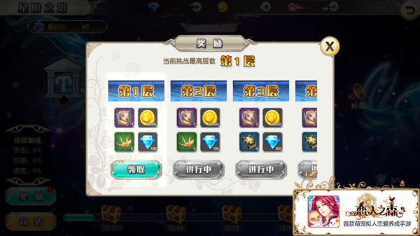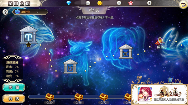 每通过一个星座,你都可以收获相应的奖励,其中星阶之塔独有的“星阶币”可以在星阶商店中进行物品兑换,王子碎片、记忆碎片,强化材料等等应有尽有。并且,当你通过一整个星层,还会收获一笔丰厚的奖品哦~
