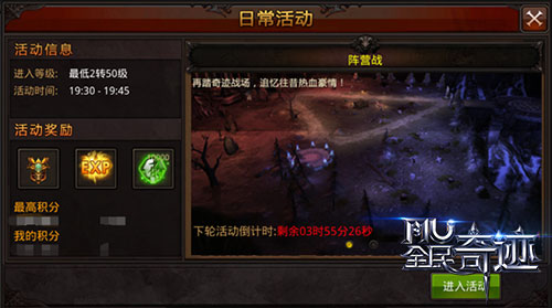 阵营战只有15分钟,进入阵营战后,玩家会被随机分配到两个阵营,在这里,只要是对面阵营的就是杀。另外,怪物击杀得分也比较高。