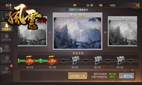 各位玩家在PVP玩法里群雄争霸,在PVE玩法里也别落于人后哦!冰河《风云志》为玩家们准备了进阶副本、须臾幻境、江湖论剑等经典副本玩法。玩家在副本当中与聂风步惊云等人携手击退绝无神等人之时,也可轻松赚取海量进阶资源、经验与海量元宝!若想早日成为高玩,别忘记及时来各类副本当中扫荡一番哦!