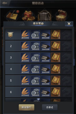 君临活动让人心动的,就是其特殊荣耀的奖励!第一名的玩家,可以获得一份专属的,最强的,君主头像框以及称谓,前三名的玩家,可以获得特殊显示装扮奖励,主城皮肤——九黎城,特殊专属,惹人眼红!其他丰厚的奖励当然还有元宝、丰富的资源,以及天赋经验点! 仔细查看这个活动不难发现,前三个阶段主要大家外出打野或采集矿产收集资源,并建设自身丰富自身武将,第四阶段开始击杀南蛮获取集结令,第五阶段开始募兵产兵医兵存储兵力,第六阶段开始,就是鼓励大家疯狂搞事情来强化自身!