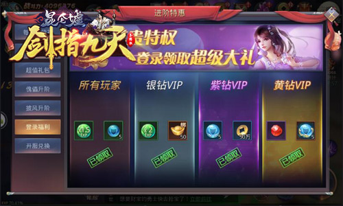 玩游戏追求的就是一个字:爽!要想玩的爽,福利肯定不能少。冰河《剑指九天》为广大玩家准备了多重日常福利,玩家登录游戏即可享受最高八重大礼奖励,海量经验卷轴、绑定元宝拿到爽。每名玩家日常还可消费少量元宝,免费兑换海量不绑定进阶材料!如果玩家还不满足,别忘记提升自己VIP等级领取更多专属小R福利哦!