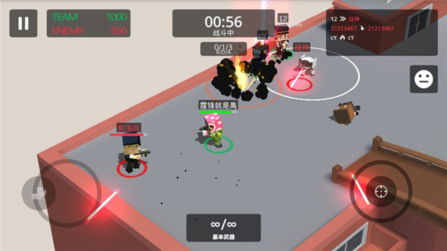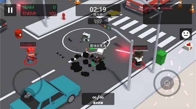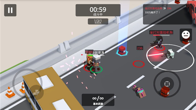 《城市大乱斗》手游是没有新手教程的,因为,这是一款根!本!不!需!要!新手教程的游戏,从打开App到会玩,你可能仅仅需要5秒钟,就能轻松上手。操作上,游戏选用了双虚拟摇杆的操作模式,左手方的摇杆负责控制角色的移动,右手方的摇杆则控制角色开枪,通过变换右摇杆的方位,可以控制角色的射击方向。