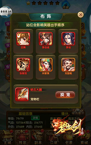 英雄是《碧血剑》手游阵容培养的核心,游戏同样也设置了多种辅助系统,帮助玩家培养强力英雄。比如英雄装备、宠物、天象和秘宝等强力辅助系统,玩家通过不断升级解锁辅助系统,并持续进行强化,将大幅度提升英雄和整体阵容的战斗力!但必须注意,辅助系统的加成没有明显战术针对性,想培养战斗特性显著的阵容,还是得依靠英雄搭配。