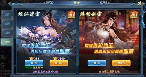 仙侠中人怎能没有仙阶?达到90的玩家其毅力得到仙界认可,开启仙阶及仙装,真正位列仙班。开启仙阶、仙装的玩家,在日常打怪升级、通关副本时,都有机会获得仙阶提升道具,随时随地提升仙阶,获得额外属性增长。如果觉得日常历练对仙阶提升过慢,还可通过聚宝池购买进阶仙玉,还能获赠极品洗炼属性仙装,战力暴涨,一步登天。