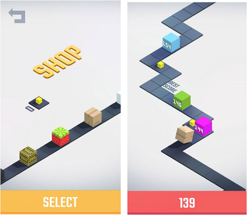 纯粹简洁,并不代表枯燥和一成不变。玩家可以通过游戏商店收集金币,解锁不同的皮肤,忍者盒子、纸箱子、地球盒子、火柴盒……想想操控一个忍者盒踏上无尽旅程是一个什么样的场景!以往只在动画和漫画中存在的幻想,在这里,都能成真。而地球盒子到底又会给玩家带来什么样的惊喜呢?这片神秘的面纱只有等成功下载试玩的玩家来揭开啦!