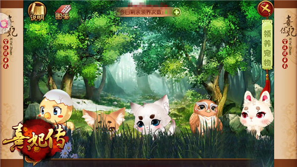自古以来便有皇帝秋巡狩猎、演练骑射的习惯。当然,狩猎野兽这类彰显武力的活就交给皇上和王爷们去做吧,小主有更重要的事要做,凶猛野兽对付不了,一两只萌兔猫咪还是不在话下的。秋巡之时,小主们就前往府邸的郊外,寻找有无可爱灵宠,看得顺眼便领养回宫,驯服一些时日可助阵宫斗。若是家中小宠已经多到无法再养了,那不如将其放生回林,或许还有一些意外的收获呢。