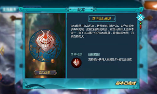 血仙面具:血仙秘法可以使宠物额外获得人物属性攻击的速度。