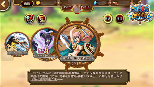 在《ONE PIECE》882话最新剧情中,路飞与BIG·MOM海贼团的卡塔库栗陷入苦战,你岂能坐视不理?《航海王 启航》第30章剧情同步热血开启,加入即可身临其境体验跌宕起伏的全新剧情,与草帽团一起向新的挑战迎击!海盗团等级也将开放至140级,红5进阶材料同步上线,助你实力更上层楼,征服汪洋大海!