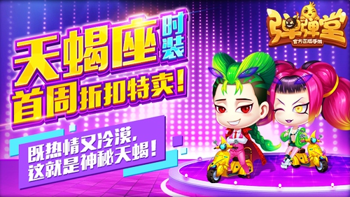 第七大道《弹弹堂》页游原班人马倾情打造,腾讯首款多人对战弹射游戏《弹弹堂手游》新版本已超燃上线,爬塔闯关,一弹入魂!在萧瑟秋风中降生的天蝎个性热情又冷漠,他们极端、狂热、神秘,给人留下深刻的印象…今日天蝎座时装上架,更有首周限时折扣特卖,时尚达人不可错过!