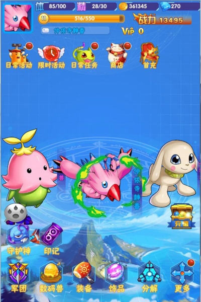 在《究极宝贝》中,不光能在历险的旅途上遇见神兽,还能召唤它们,达成羁绊情缘成为你的伙伴。《究极宝贝》里的数码神兽们多达数百种之多,随意组合,策略搭配,还能产生各种你意想不到的神器力量。是不是很心动,收集你喜欢的数码神兽们,看看哪个是最强的一只。
