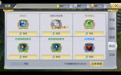 玩家在进入“竞技”后可以在面板上查看近期战报,排行榜以及设置技能。最重要的是还能使用竞技获得的积分在积分商城里兑换需要的道具奖励。