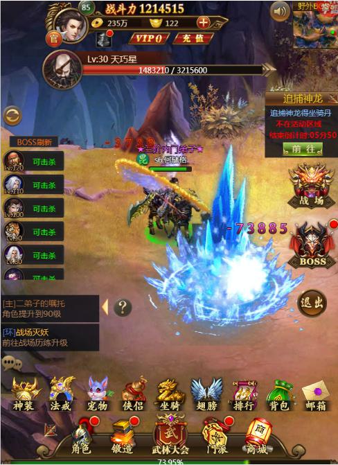 在《武神传说》中最丰富最吸引玩家的肯定就是各种各样的BOSS了,目前BOSS分为三种,分别是个人BOSS、野外BOSS、世界BOSS。个人BOSS根据玩家的等级开放,难度一般,基本是可以无伤过的。