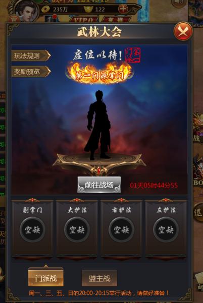 武林大会分为两个副本内容,分别是门派战和盟主战。