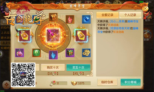 金秋庆典最不能缺的是什么?当然是全民参与的花式寻宝活动啦!冰河《古剑绝学》为广大玩家准备了装备寻宝、符文寻宝、巅峰寻宝三大玩法,玩家可利用日常赚取的要是,在各个寻宝玩法当中随机抽取红品顶级外形“摄魂诛仙”、“大夏龙雀”等极品道具。哪怕玩家时运不济,也可100%获取海量神兽橙装宝箱、玄晶等资源哦!