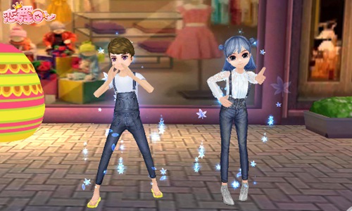 《恋舞OL》背带牛仔情侣套装甜蜜上架!赶快下载恋舞OL,进入游戏,体验清新甜蜜之恋吧~
