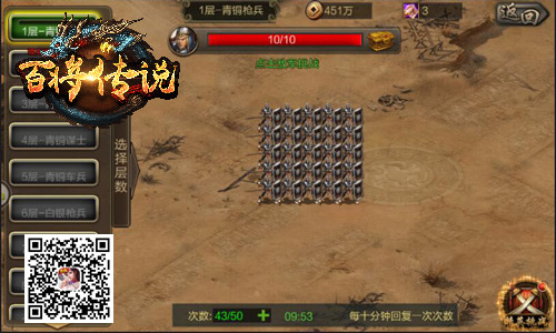 走过路过不要错过,传奇挑战现已全面开打啦!冰河《百将传说》传奇挑战玩法现已开启,玩家可通过战役界面进入挑战。挑战中,玩家可依次面对青铜枪兵、青铜弓兵、白银骑兵等30个不同兵种,玩家点击屏幕内的敌军即可进行挑战,获取海量铜钱、进阶秘籍奖励!玩家点击的次数越多,掉落的道具也越丰厚,快拿出你的麒麟臂挑战敌将吧!