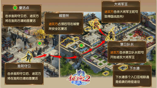 “国战遭遇战”是《征途2手游》针对国战新手设计的新玩法,也可称为国战的“演练战”。相比5000v5000的万人国战,“国战遭遇战”是40v40的小型战场,在开服的前三天滚动报名,双方报名人满40人即可开始战斗。“遭遇战”的持续时间和战场面积均为常规国战的四分之一,旨在减轻新手大幅度的场景切换和跑路负担。而麻雀虽小五脏俱全,这小型的战场复现了国战中“击杀大将”、“攻防加成”等最核心元素。新手玩家可在这短小精悍的玩法中反复体验“国战”玩法的精髓,零门槛上手迅速成为国战“老司机”!领略国战新魅力!