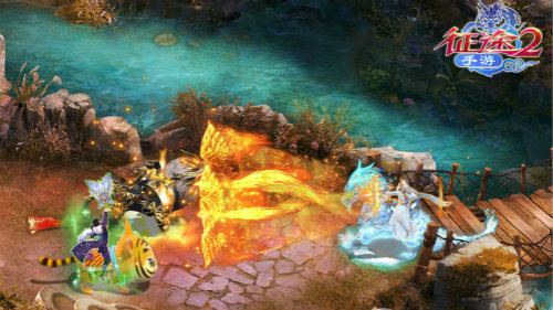 仙雾缭绕的仙兽谷,恢弘壮阔的王城,潺潺的流水,欢脱的鱼儿翱翔湖底……每个细节后蕴藏着技术的创新:更精细的画质下,加入层叠技术使得场景更有层次感;Spine2D“纸娃娃”呈现细致动作,2D游戏也能感受36D乳摇诱惑;粒子光效的加入,提供游山玩水的真实体验;实时天气感受身临其境的风雨变幻!