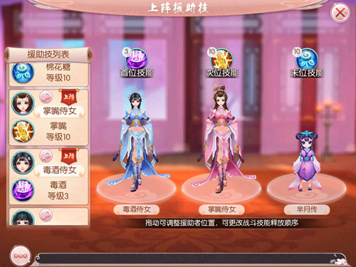 小皇子们除了能增加玩家上阵角色的属性加成,不同的课程将会增加不同的属性加成,而随机技能也将作为主动技能展示。因此,在玩家上阵的3个主动技能中,可以替换成皇子的主动技能。每个技能功能都不尽相同,有的可以为玩家上阵角色和随从增加防御、血量等增益buff,有的则是对敌人造成伤害。